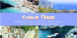 The first Armchair Travel destination of 2020 is the amazingly picturesque Cinque Terre. A string of centuries-old villages on the rugged Italian Riviera coastline. Come along to the library, sit back, relax and experience vineyards, harbours and sweeping sea vistas; stories, travel tips and more.